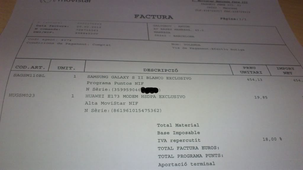 Marca: Samsung Modelo: Galaxy SII Compañía: Movistar (se liberaria gratis a peticion del comprador) Precio: 350€ + Gastos envio Estado: 10/10 Desperfectos: Ninguno Entrega/Envío: MRW, Seur, Correos o en mano Ubicación: Manresa (BCN) Forma de Pago: Ingreso/en mano Factura: Sí Tiempo de Uso: Des de 20/02/12 y lo demuestra la factura Descripción: Pues ayer fui a por el movil y ya que en la tienda lo abrieron para ver si funciona, yo lo segui usando. Decir que la idea era dejarlo precintado, pero no he podido resistirme. El movil va que da gusto, y sin tener que tocar nada. Lleva la ROM oficial de Movistar y no esta ni rooteado ni nada. Lo he hecho servir (y lo seguire haciendo de momento) para ver peliculas/series y jugar un poco. No ha salido a la calle aun. Los accesorios estan sin usar. Para cambio en mano me podria despalazar hasta otros pueblos/ciudades cercanos a la mia. Por ultimo, la venta estara abierta hasta Marzo, si no se vende, me lo quedo, que me ha impresionado mucho. El precio no es negociable. ![]() ![]() ![]() ![]() ![]() ![]() ![]() ![]() ![]() ![]() ![]() ![]()