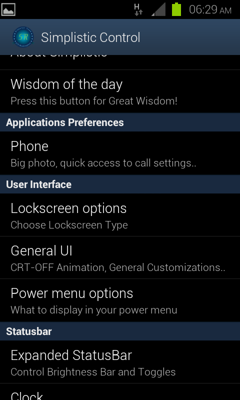 --------------------------------------------- http://forum.xda-developers.com/show...php?p=30935924 --------------------------------------------- ![]() Versión Actual: V (Para las versiones de esta ROM se usan Números Romanos (I, II, III, IV, V..). Si sale algún parche para una Versión se llama Revisión) ![]() - Los habituales Simplistic Tweaks, incluyendo GPS tweak, init.d tweaks, build.prop y muchos más - Google Apps actualizadas, incluyendo el último google maps - Logcat deshabilitado por defecto (se habilita con Extweaks) - Último Modem y Siyah - Fuente JellyBean, Animaciones, y algunos elementos portados en la statusbar. - Lidroid 15 toggles, configurables desde Simplistic Control - Nueva Simplistic bootanimation por Tuqano, muchas gracias - Call Recording activado - SIP Calling activado Bueno y ahora lo importante: - Camera: capturas de fotos con teclas de volumen, se puede usar con la batería baja - CM9 Apps portadas: Dialer, Contacts, Mms, Email, PhaseBeam LW - BLN soportado, con hacked Mms (mediante Extweaks) - Simplistic Control: Control total para personalizar la ROM desde aquí: Phone, StatusBar extendida, Reloj, Batería, OverClocking/Underclocking, nueva "Cita del día" y mucho más - Linterna Simplistic en lockscreen y cambio de pista con Teclas de Volumen cuando la pantalla está apagada (se activan ambos desde Simplistic Control) - S3 Ripple Lockscreen: ticker, shortcuts, y optimizaciones especiales para que funcione mejor en nuestro S2 (totalmente controlable desde Simplistic Control). También toggle para AOSP Lockscreen (Simplistic Control) - CRT-OFF y CRT ON (configurable desde Simplistic Control) - Barra de brillo S3 (activar/desactivar desde Simplistic Control) - Gestor de tareas S3 - Power Menu: elige las opciones que quieras mediante Simplistic Control, portado S3 Power Menu Sound Controls también - Controles de Volumen Extendidos, como en el S3, cuando cambias el volumen, puedes ver un pequeño botón de configuración, que expande el menú para controlar todos los volúmenes - Algunas traducciones en la Lockscreen Y más cosas que encontrarás en el interior[/size] ![]() De SIMPLISTIC III a SIMPLISTIC IV - Samsung Keyboard Predictive text and 3x4 fixed. - Fixed Call Recording. - Fixed Wallpaper stretching on lockscreen, please use Simplistic Control to set the wallpaper (Option is in Lockscreen Options). - Samsung Dialer, Contacts and Mms added by default (they have a nice slight edit by Mirko). [AOSP equivalents will be added as an addon] - Fancy Gallery and new resizable floating Video player ported from Note. - Contacts Picture problem is resolved. - Lockscreen Music Controls (from S3, not enabled on S3) now work on Ripple lockscreen and Circle Lockscreen. - New Extended Statusbar theme. - Skip songs with volume keys when screen is off, now supports raising and lowering the volume as well as skipping the tracks. - Fixed some tweaks. - On other news, Wisdom of the day service will be launcher soon, we will update everyday :P. De SIMPLISTIC IV a SIMPLISTIC V - Fully rebuilt from scratch, based on XWLPX, all features of previous versions are included. - Fixed Random reboots on unlock device. - Fixed homescreen wallpaper showing before ripple lockscreen. - Fixed SMS issues. - Fixed Note Gallery FC on edit picture. - Much more minor fixes and optimizations. New features: - Remove all button in recents panel (S3 port) - An option to control music controls on Samsung Lockscreen (Hide, Top, Bottom) - An option to enable killing task on longpressing back key :P -.-.-.-.-.-.-.-.-.-.-.-.-.-.-.-.-.-.-.-.-.-.-.-.-.-.-.-.-.-.-.-.-.-.-.-.-.-.-.-.-.-.-. ![]() Simplistic Control es una aplicación de configuración desde donde se puede controlar una gran cantidad de los mods implementados dentro de la ROM. Simplistic Control tiene un montón de características ordenadas por categorías (Teléfono, Bloqueo de pantalla, Cambios Visuales, Botón de encendido, Interruptores, Reloj, Batería, Rendimiento) que proporcionan un acceso fácil y rápido para controlar el mod que quieras. ![]() Importante: La ROM será siempre No-Wipe, sin embargo se recomienda hacer wipe excepto si desea instalar una revisión.
