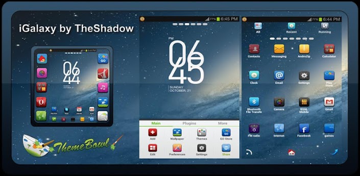 Resumen: iGalaxyHD go tema LauncherEX por TheShadow de themebowl.com [pausa] iGalaxy HD Go Tema LauncherEX por TheShadow de themebowl.com es un tema de alta definición con android Galaxy HD papel tapiz, iconos HD ibox, botones con estilo y elements.This transformará su galaxia y los teléfonos androides a HD. Nota: Más actualizaciones se agregarán para este tema Cómo instalar el software? 1.Descargar e instalar la última versión de Go Launcher y el tema ex Locker 2.Download e instalar el tema iGalaxyHD 3.Abra Ir Ex lanzador. 4.Go a las opciones-themes-igalaxyhd y aplicar ![]()