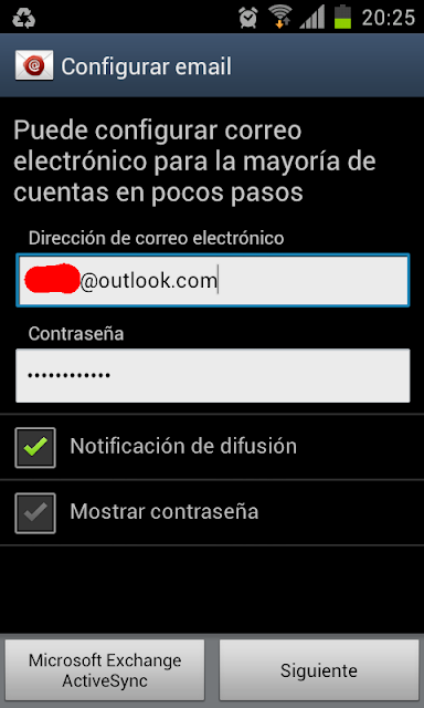 Cómo poner el correo de outlook.com en Email de Galaxy S2