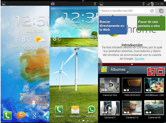 Saludos Compañeros! Tenemos nuevo terminal en la manada! ijijjjiji Un bonito Samsung Galaxy S3! Ampliamos fronteras! y para esta rom tenemos nuevo Beta Tester........ OSCARFILFER.... otro mas que se añade al cuarto oscuro! jijjijj La rom aun es beta.... estamos en pruebas y ajustando los ultimos detalles! Como para este terminal ay muchos cocineros... keremos hacerlo con mucha trankilidad, y bien hecha! Sin prisas! Esperemos k os guste! Poco a poco, iremos sacando proyectos, e intentando traeros lo mejor! Si todo sale bien, ay 3 terminales nuevos.... yo digo dos k estan en mis manos... ijjjj Como no, SGs3, y un HTC Evo 3D! Pero primero acabaremos esta... y luego la del evo! ijijjijij Ire añadiendo capturas y mas info, encuanto probemos ultimos cambios! **mis impresiones: muy muy rapida, estable, muy ELEGANTE... y como no, del Team! ------------------------------------------------------------------------------------------------------------------------- ------------------------------------------------------------------------------------------------------------------------- PORFAVOR LEER BIEN ANTES DE INSTALAR!!!! PREFERIBLEMENTE.... VENIR DE UNA VERSION "JB" SE BORRA LA SD INTERNA (hacer copia de seguridad de memoria interna) (no tiene k aver ningun problema... tiene todos los idiomas!! jijijij) Rom DarkRoom "NewGeneration" SGs3 Capturas: Capturas version final (abajo) Info de la rom: