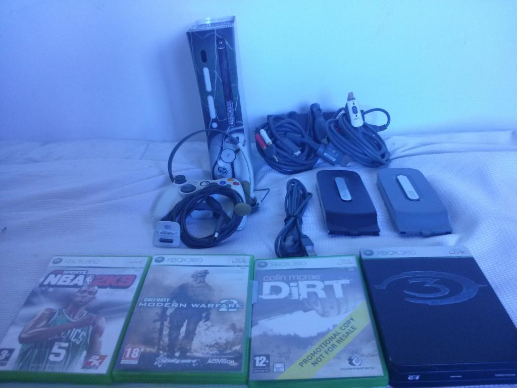 * Sobre el envío: - * ¿Dispones de factura?: No * Fecha de la factura: - * ¿El producto está en garantía?: No Otros datos de interés * Descripción general y otros comentarios: Xbox 360 en perfecto estado edición limitada Alemania 2006 (modelo 2006) Ademas de la consola se incluye como extras: - Cable para conexion RGB - 2 Discos duros, 1 de 15 GB y el otro de 120 GB - 4 juegos: NBA 2K9, Call of Duty - Modern Warfare 2, Colin McRae Dirt, Halo 3 (Edición especial con caja de aluminio) Gastos de Envio: 14 € Es una oportunidad para coleccionistas * Certifico que la descripción aportada es correcta: Sí * Acepto las normas de la sección de compra y venta de HTCMania: Sí Fotografías reales del material |