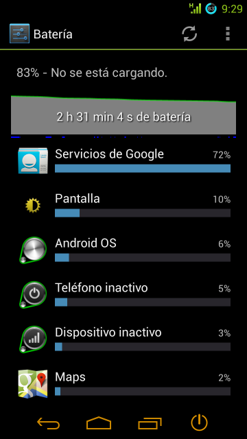 No desesperemos gente,que yo hoy solamente en 23h de bateria,los servicios de Google me han ventilado el 32% de la bateria,asi,por sus santos cojones.