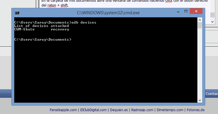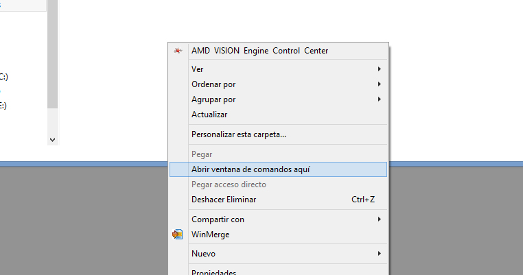 En la carpeta de mis documentos abre una ventana de comandos haciendo click con el botón derecho del raton + shift.