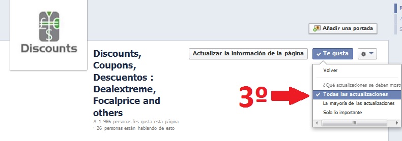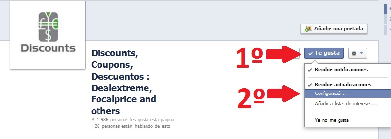 Suelo añadir los códigos descuentos y promociones según aparecen, a una página de Facebook y al Twitter, cada mes son actualizados los códigos de muchas páginas web, ya que me los mandan el día 1 de cada mes. Como por ejemplo: Dealextreme, Focalprice, BuyInCoins, MiniIntheBox, Dinodirect, Priceangels, Lightake, Tmart, Chain Reaction Cycles... y se van añadiendo más y más. LOS DESCUENTOS ESTÁN ACTUALIZADOS CONSTANTEMENTE: Página de Facebook con descuentos y cupones actualizados, DARLE A ME GUSTA para recibir los descuentos que vayan surgiendo ![]() Si queréis recibir todas las ofertas que se publican en el Facebook, hacer clic en el botón TE GUSTA y en el menú desplegable en la opción CONFIGURACIÓN. ![]() Dentro de configuración marcáis TODAS LAS ACTUALIZACIONES: ![]() Cuenta en Twitter, podéis seguirla para recibir los descuentos según vayan surgiendo ![]() Supongo que os será más cómodo usar el enlace anterior del Facebook, Twitter o Pinterest, sino, aquí tenéis el enlace a cada una: Códigos de descuento para Dealextreme. Códigos de descuento para Miniinthebox. No pidáis por envío Express aunque salga gratis, los pararían en aduanas. Códigos de descuento para LightInTheBox. Evitar pedir por envío Express aunque salga gratis, los pararían en aduanas. Códigos de descuento para Chain Reaction Cycles. Códigos de descuento para Buyincoins. Códigos de descuento para Dinodirect. Códigos de descuento para Focalprice. Códigos de descuento para Pandawill. Códigos de descuento para Tmart. Códigos de descuento para aHappyDeal. Códigos de descuento para eForChina. Códigos de descuento para PriceAngels. Códigos de descuento para Lightake. Códigos de descuento para Fasttech. Códigos de descuento para BangGood. Códigos de descuento para Aliexpress. Espero que os sea de ayuda y se agradece cualquier código descuento que podáis aportar