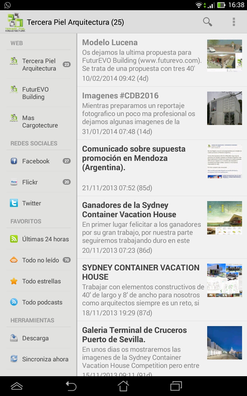 En ella podreis consultar facilmente desde vuestro smartphone o tablet las entradas del blog, facebook, las galerias de imagenes en flickr... Tambien estamos implementando poco a poco entradas de proyectos de Arquitectura de Containers a lo largo del mundo. Espero que os guste y disfruteis tanto como nostros de esta pasion. La aplicación es y sera totalmente gratuita y para descargarla solo teneis que poner Containers Habitables en el buscador de Google Play o acceder a traves de este vhttps://play.google.com/store/apps/d...otecture&hl=esinculo Un saludo y gracias a todos los que haceis que esto siga adelante. |
