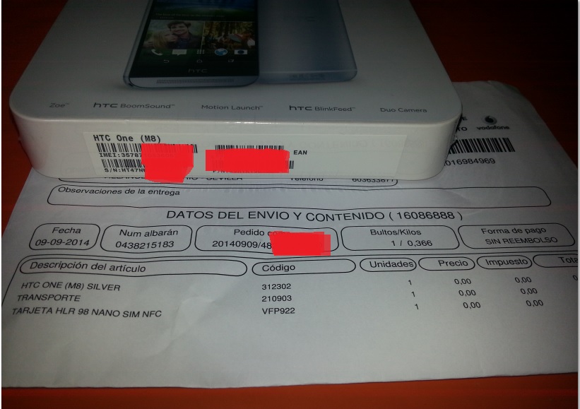 * Sobre el envío: Envio a mi cargo * ¿Dispones de factura?: Sí * Fecha de la factura: 09/09/14 * ¿El producto está en garantía?: Sí Otros datos de interés * Descripción general y otros comentarios: Nuevo con factura de vodafone * Certifico que la descripción aportada es correcta: Sí * Certifico que no estoy vendiendo un producto ilegal o una réplica: Sí * Acepto las normas de la sección de compra y venta de HTCMania: Sí Fotografías reales del material * Última edición por Ismaelmc Día 10/09/14 a las 18:31:46 |