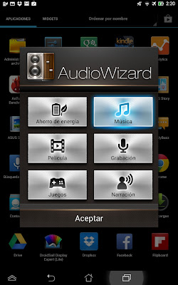 Especificaciones Procesador: Mediatek MT8125 de cuatro núcleos a 1,2 GHz Gráfica: PowerVR SGX544 a 286 MHz RAM: 2 Gb (998 MB utilizables) Pantalla: 7", 16:10, 10 Puntos táctiles Tipología pantalla: IPS Resolución: HD 1280 x 800 (216 ppp) Cámara: Trasera 5 Mpx y delantera 1,2 Mpx Conexiones: Jack 3,5 mm, USB 2.0 MicroSD: Si, hasta 32 Gb Batería: 3950 mAh Sensor: GPS, posición, acelerómetro Sistema operativo: Android 4.2.1 Tamaño y peso: 10.8 x 120 x 196.6 mm, 302 gr Altavoces: Estereo Color: Blanco, amarillo, verde, azul, rosa Precio: 149 € la versión de 16 Gb Contenido caja El dispositivo está disponible en 4 colores, verde, blanco y amarillo, con acabado brillante los tres y un azul con acabado mate. El dispositivo viene con un cargador de 1,35 amperios que proporciona un carga bastante rápida (alrededor de 3 horas) y cable USB. Un pequeño stand de plástico que pese a tener una calidad muy baja, no deja de resultar útil y es un detalle muy acertado. ![]() El dispositivo está disponible en 4 colores, verde, blanco y amarillo, con acabado brillante los tres y un azul con acabado mate. El dispositivo viene con un cargador de 1,35 amperios que proporciona un carga bastante rápida (alrededor de 3 horas) y cable USB. Un pequeño stand de plástico que pese a tener una calidad muy baja, no deja de resultar útil y es un detalle muy acertado. ![]() Diseño La parte trasera ha sufrido un cambio significativo en cuanto al diseño respecto a su predecesora, ahora nos encontramos con una carcasa lisa y brillante (a excepción del modelo en azul que es mate), en contraste con la carcasa trasera con un patrón en relieve de la Memo Pad 2012. Puede que la parte trasera de plástico delate al Asus Memo Pad HD y sea lo único que sugiera que no se trata de un dispositivo premium. De todos modos la construcción es bastante robusta y no da en ningún caso la sensación de ser un dispositivo barato. Al apretar el tablet por los extremos se escapa un pequeño crujido en la unión de la carcasa trasera con la pantalla, nada exagerado y que nada tiene que ver con los crujidos de la Nexus 7 2012. Además llama la atención que la carcasa es como una especie de "caparazón" que no acaba de encajar perfectamente y aparecen como unos milímetros sobrantes por todo el perímetro del tablet, os muestro a lo que me refiero con la siguiente foto. Probablemente ha sido una solución de ensamblaje para hacerlo mucho más fácil pero claramente empeora el resultado final. ![]() ![]() La nueva carcasa es un imán para arañazos, tres días de uso con un cuidado extremo y ya puedo ver como empiezan a verse algunas pequeñas rayas, muy suaves eso si, que probablemente se hayan producido por el polvo, pero no quiero ni imaginar como estará con unos meses de uso. El modelo azul mate creo que, aunque no tan llamativo como los demás, es la mejor opción de compra. Resulta muy cómodo al sostenerlo en la mano, tiene una forma muy ergonómica, los bordes redondeados de la parte trasera y un tamaño de 120 mm a lo ancho ayudan mucho a la hora de sostener con una mano el dispositivo. Es un poco más gordo que por ejemplo el Nexus 7 de la anterior generación, pero gracias a que se hace más estrecho por los extremos da la sensación de ser bastante fino. En altura ha reducido unos mm respecto al Nexus 7 2012. La posición de los botones se siente un poco extraña ya que no se encuentran en el lateral como es habitual, sino desplazados un pelín hacia la zona trasera, es una posición cómoda para su uso con la mano izquierda pero con la mano derecha dificulta la presión de los botones. ![]() La parte delantera no dista mucho de los demás modelos de Asus, encontrando en el borde inferior el logotipo de Asus. Además, la ranura existente entre el cristal y el plástico es bastante pronunciada, lo que hace que se cuele una importante cantidad de polvo, que va a ser difícil de eliminar. Conexiones Aquí es donde flojea bastante la Memo Pad, Asus ha sacrificado la conectividad del dispositivo para conseguir un dispositivo imponente en otros aspectos. La Asus no cuenta con muchas conexiones y es algo que le hará perder buena cuota de mercado. Un conector Jack 3,5 mm, un USB 2.0 en la parte superior y un slot para microSD en la parte izquierda sin ninguna tapa de protección. Sin USB-OTG, no podremos conectar ningún dispositivo externo a través del USB, pero siempre existe la posibilidad de conectar periféricos por Bluetooth, nosotros lo hemos probado con un teclado y un ratón bluetooth y el funcionamiento es perfecto. Tampoco cuenta con protocolo MHL. ![]() ![]() Sonido Los dos altavoces se encuentran situados en la parte inferior trasera, aunque al sostener el tablet de forma horizontal la mano se sitúe inevitablemente sobre la ranura, ésta no llega a ser cubierta es su totalidad con lo cual no se produce prácticamente pérdida de calidad de audio. En cuanto a la calidad del sonido, los altavoces son bastante potentes consiguiendo un buen balance de agudos y medios, echando en falta unos buenos graves como viene siendo habitual en dispositivos móviles. ![]() El dispositivo dispone de una aplicación llamada AudioWizard, la cual nos permite elegir diferentes modos de audio prediseñados en el dispositivo, que optimizan la calidad de audio dependiendo del uso. ![]() El sonido es gratamente sorprendente al usarlo con auriculares, donde además de ofrecer un sonido claro, el rango de frecuencias que el oído puede apreciar es mucho más amplio, lo que nos permite disfrutar de diferentes estilos de música. Pantalla El terminal cuenta con una pantalla 7" con una relación 16:10 y 10 puntos táctiles. IPS con resolución de 1280 x 800, lo que proporciona una densidad de píxeles de 216 ppp, la misma resolución que la Nexus 7 2012. La resolución es algo que preocupa bastante a la gente en los terminales por debajo de 200 euros, que suelen usar resoluciones muy bajas y los píxeles son visibles a simple vis