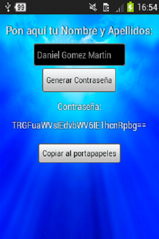 Al enviar este archivo .apk nuestra "víctima" procederá a abrir la aplicación felizmente y tratará de registrarse. Al no poder realizar esta acción nosotros le dejaremos nuestro usuario y contraseña, el usuario que deberemos enviarle debe acabar en "9", independientemente de las demás cifras o caracteres (Ej: Ataulfete9), y la contraseña es nuestro nombre y apellidos codificados que hemos creado con el generador.