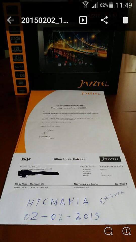 ![]() Sobre el post de intercambio del foro * ¿Relacionado con smartphones o tablets?: Sí * Título del post: Cambio Tablet Jazztel 10.1 Sobre el producto * Si quieres cambiar un teléfono, ¿es libre o de operadora?: Libre de fábrica * Marca: I Joy * Modelo: MGM-10136 * ¿Producto nuevo o de segunda mano?: Nuevo / Desprecintado * ¿Desperfectos?: NINGUNO * Estado del producto (de 1 a 10): 10 * Tiempo de uso del producto: Desde el 22/01/2015 en caja siempre sin usar * Ubicación: Madrid * Sobre el envío: Suelo usar correos * ¿Dispones de factura?: Sí * Fecha de la factura: 21/01/2015 * ¿El producto está en garantía?: Sí * ¿Por qué producto lo quieres cambiar?: Me gustaria cambiarlo por un movil de 5.5 o mas pulgadas o por algun aparatillo tegnologico que alguien este dispuesto a cambiar y me guste Otros datos de interés * Descripción general y otros comentarios: Tablet de 10 pulgadas marca I Joy regalo de Jazztel valorada en 192 € Android 4.4.2 Cuatro nucleos 1GB de Memoria Ram 16gb de almacenamiento Bluetooth Camara trasera y delantera 7000 mAh de bateria Conector Mini Hd para ver en la tele Adaptador micro hd La tablet la recibi el dia 22/01/2015 solo la he abierto y probado para ver que todo funciona ha estado en la caja y cerrada hasta el dia de hoy. * Certifico que la descripción aportada es correcta: Sí * Certifico que no estoy cambiando un producto ilegal o una réplica: Sí * Acepto las normas de la sección de compra y venta de HTCMania: Sí Fotografías reales del material * Última edición por Emiliux Día 12/02/15 a las 07:38:35. Razón: Vendida al usuario adrianmagig |