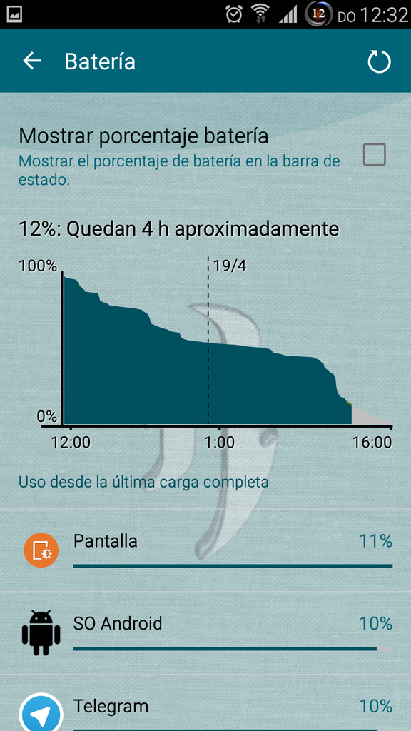 No he configurado nada en especial para ahorrar batería, la rom la he instalado completa, es decir, he instalado todas las apps que vienen en aroma además de las mías propias y la pantalla está con el brillo a tope.