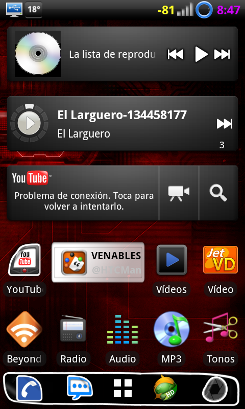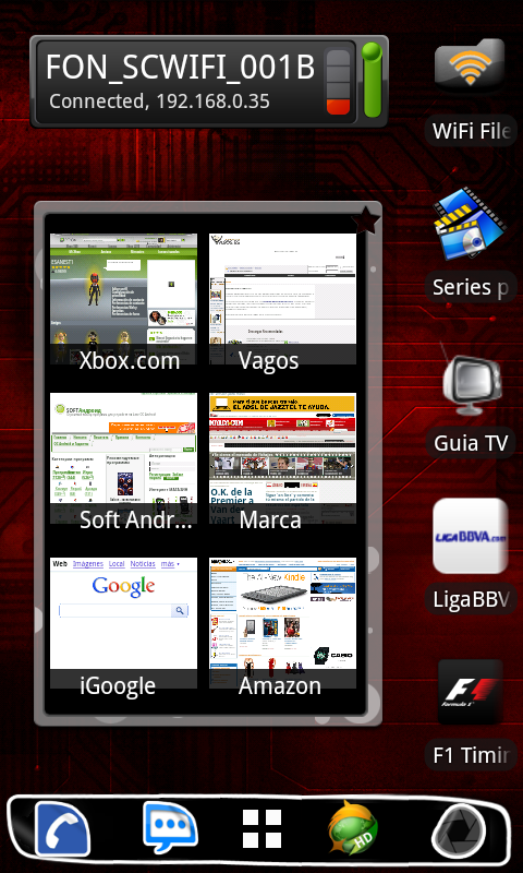 estoy empezando a familiarizarme con Android y con mi N1, por eso sólo tengo ocupados 3 escritorios. No he probado todavía el N1 como reproductor de música, porque con lo que me dura la batería como para ponerme a escuchar música