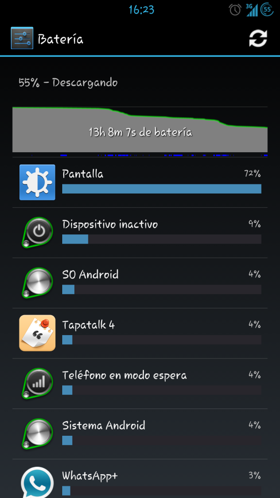 Aquí teneis como va de bateria y de antutu. A medio ciclo, siempre con 3g auto y el primer ciclo tanto de la rom 10.2 así como del kernel Adam.