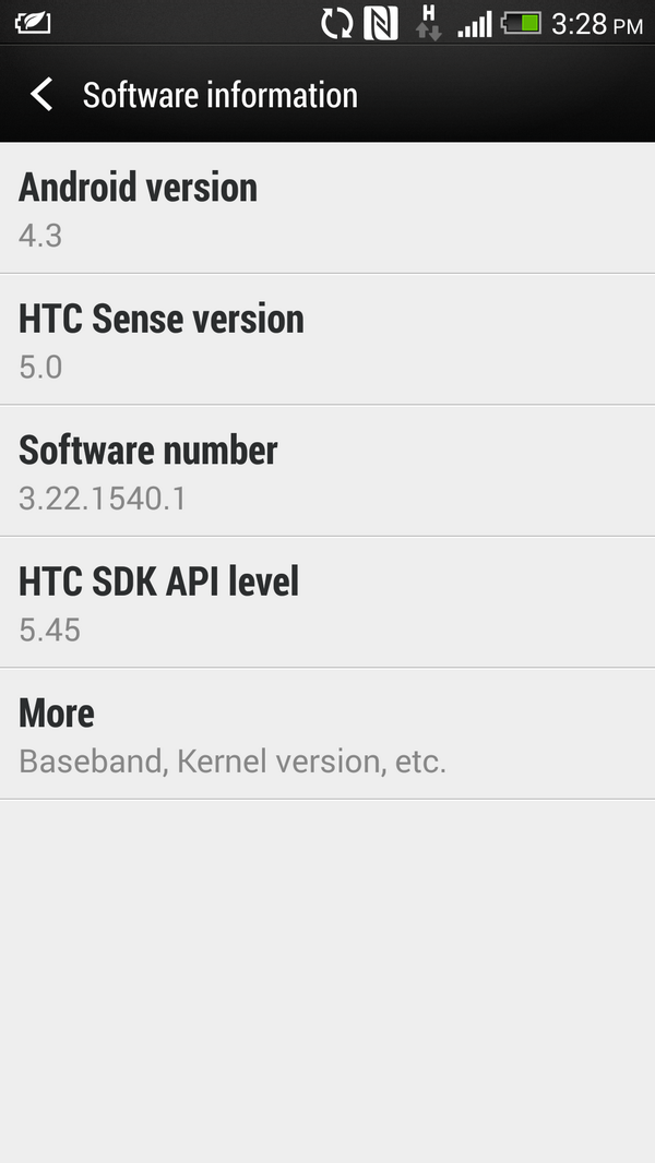 @htcdev: Android 4.3 update w/Sense 5 rolling out now to #HTCOne Developer Edition users. Updates from version 1.29.1540.17 to 3.22.1540.1. E