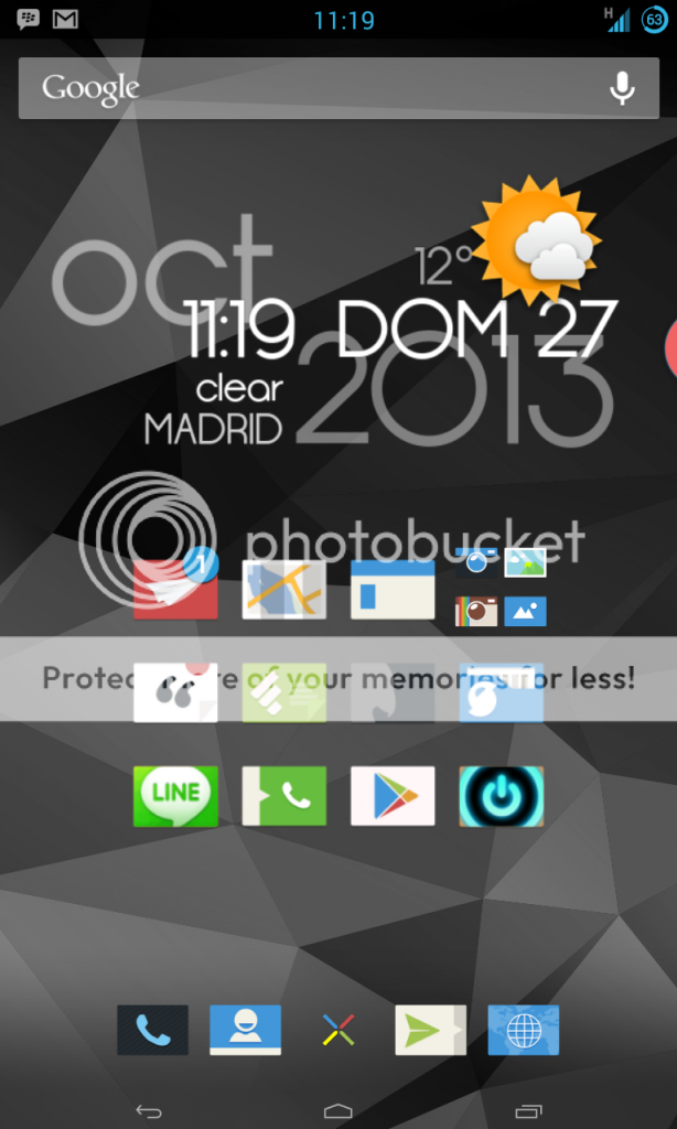 Yo uso 'apex', con el pack de iconos 'Tendere' y el fondo lo saqué de 'Poly - Wallpaper Pack'. Todo con una densidad de 280.