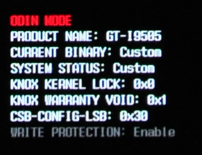 Solo tengo odin mode, product name, current binary, system status, csb config y write protection