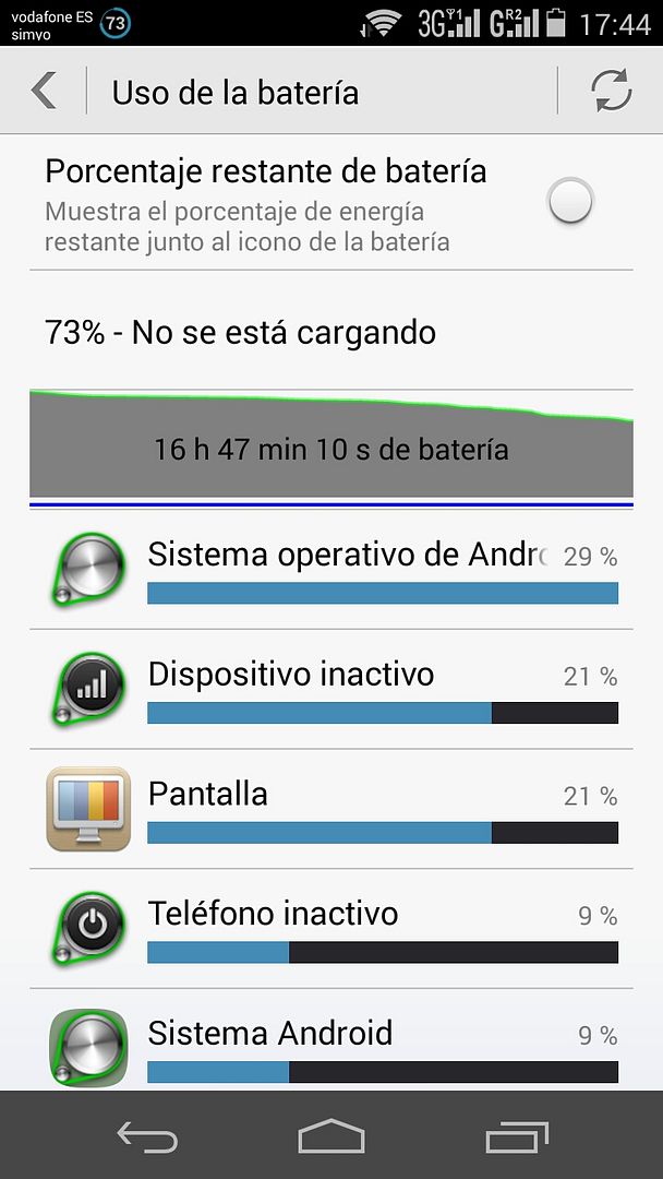 Mi uso no tiene nada que ver con el tuyo, mi móvil no para durante el horario comercial. Ya te dije que mínimo de 3 a 4 horas de llamadas diarias, otras tantas de gps, etc... por lo que mis consumos no se parecen en nada, de hecho, el mío apenas está en "inactividad".