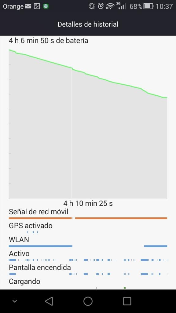 Lo único que me llama un poco la atención, es que en la pantalla con el grafico de batería, he visto que algunos en señal de móvil, teneis la barra en verde con espacios en blanco, y yo siempre la tengo en naranja y continua.