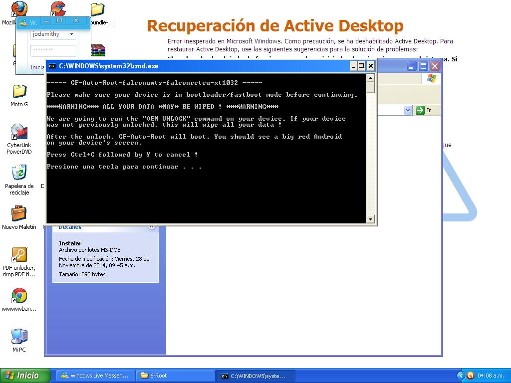 P.D.: Asegúrate que te tratas de instalar el root con el CF-Auto-root que corresponde a tu modelo de moto G