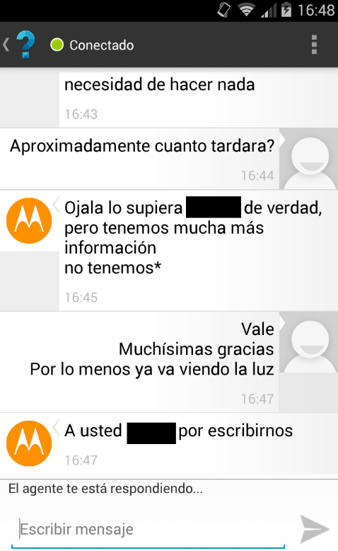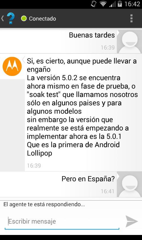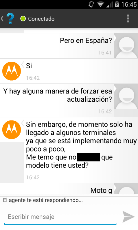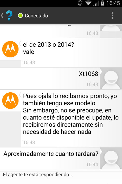 bueno, cansado de esperar mi OTA, me puse en contacto con motorola por su chat, he de decir que de las veces que lo he usado esta vez me ha tocado un chico majo y es el que mas info me ha dado.