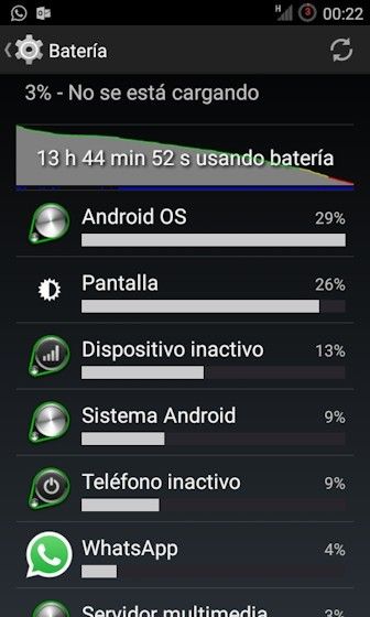 Anoche probamos a dejarlos ambos a tope y modo avión. En 10 horas la slimkat, 98%, la slimsaber, con greenify, 99%, y mirando un par de veces la hora.