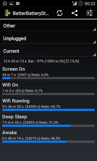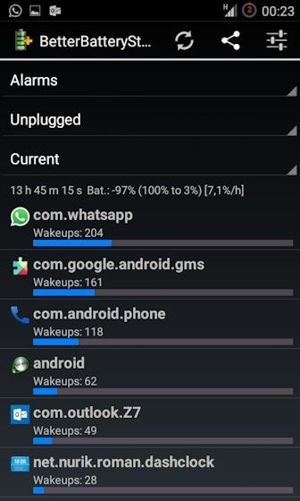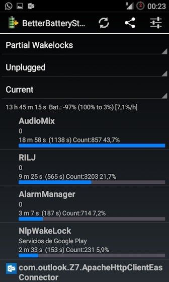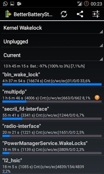 Le instalaré entonces el better battery stats, a ver si nos aclara algo.