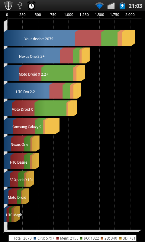 ![]() Lo iba a postear. El kernel va muy muy bien, tiene mejoras para voodoo en sonido y color, overclock, underclock y además tunea el chip gráfico para ponerle un poco de overclock también, quita el bloqueo de fps... Además vale la pena instalar los drivers 3D que ponían por aquí de ayer o anteayer (que ya no me acuerdo). Total, que en quadrant, poniendo el procesador a 1000MHz y con un undervolt brutal se ahorra batería y tenemos quadrants bonitos bonitos. Y como para muestra un botón (tras cuatro pasadas del test):