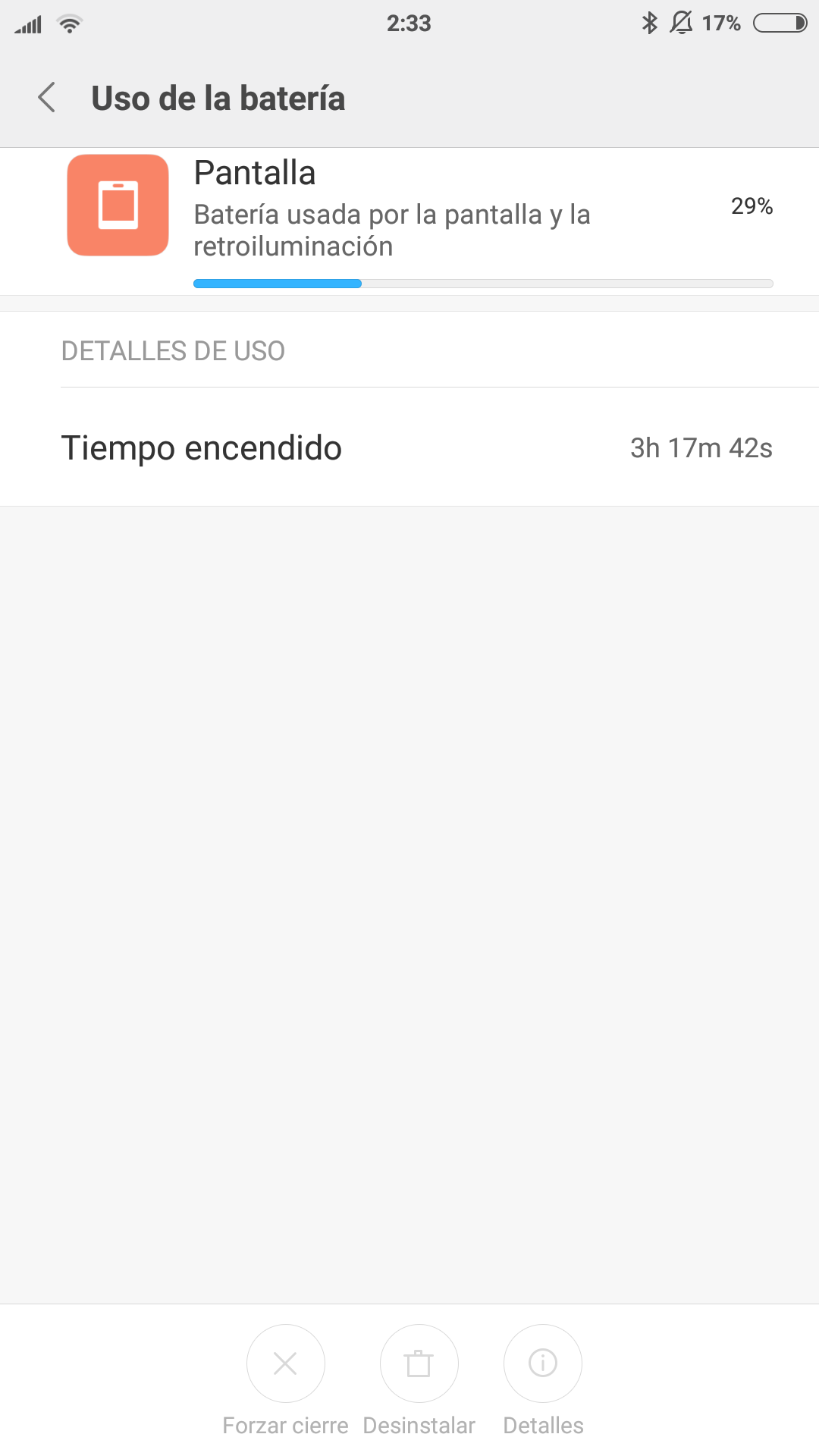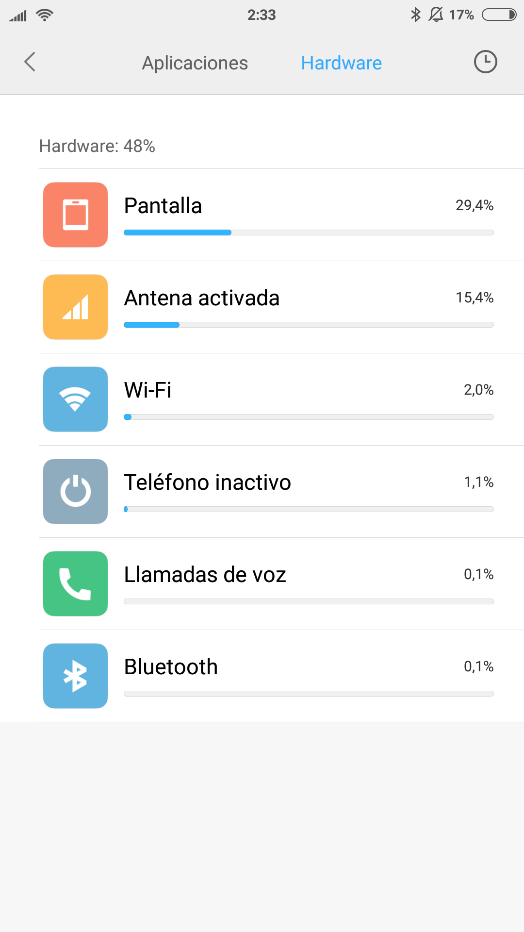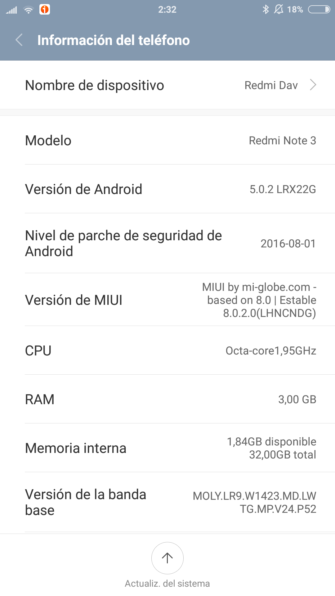 No es problema de la batería porque la he cambiado por una nueva original y sigo igual. Tampoco de ROM, porque he pasado por muchas, incluidas miui 7 y 8 oficiales en inglés, y lo mismo. Creo que podemos decir que este modelo tiene algún problema y eso hace que con el tiempo la batería dure poco. No creo que sea la pantalla tampoco porque la mía se rompió al caerme y la cambié, pensando que así igual también daba con el problema, al ser la pantalla lo que más batería consume. Pues tampoco... ![]() |