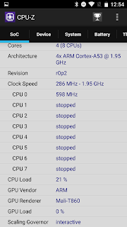 A destacar los modos para operar el teléfono con guantes (Gloves touching), y modo dedos mojados (Wet-finger touching) que facilitan la interacción del móvil con punteros tan poco precisos como puede ser un guante o las manos mojadas (piscina, playa, etc) Información desde el propio dispositivoInformación obtenida mediante herramientas de software directamente desde el dispositivo..Para tener una fuente fiable de información del sistema, he obtenido información desde el mismo dispositivo, ya sea desde la misma información que me proporciona el sistema Android (que generalmente es mas bien escueta), como utilizando otros programas que logran sacar mucho mas información, y de forma mas detallada, con lo que nos podemos hacer una idea general del dispositivo en su conjunto. CPU-ZWindowsPara quien no conozca estos programas, decir que un benchmark es una herramienta que ejecuta una prueba normalizada que se realiza en un dispositivo. Estas pruebas puntúan (generalmente ponderando varios resultados obtenidos) el desempeño de un dispositivo, de manera tal que el puntaje final puede servir para poder comparar de manera simple y directa el rendimiento general entre varios dispositivos. Existen muchos benchmarks, pero en mis pruebas generalmente utilizo los mas populares. Si tienes alguna sugerencia de un nuevo benchmark, déjame un comentario nombrando el programa específico y la razón, para poder contemplarlo en siguientes reviews. En la práctica, si quieres comparar este dispositivo (del cual estoy comentando en este articulo) con otro que veas por la web, o uno que tu mismo tengas, basta con que encuentres el resultado de alguno de los benchmarks y compararlo directamente con las capturas de pantalla que pongo aquí. Con esto, ya te puedes hacer una idea general de que tal van estas máquinas, comparando sus resultados. Nota acerca de los resultados de los benchmarks Hay que tener en cuenta que estos resultados son meramente referenciales. Es muy probable que si ejecutas estos benchmarks mas de una vez, tendrás mas de un resultado y muchas veces pueden variar de forma sensible. Esto puede suceder por muchos factores (temperatura del dispositivo, carga de memoria mientras se realiza la prueba, conexión a internet, cambios en los sensores como puede ser mientras se mueve el dispositivo, etc, etc). Por esta razón, en muchas ocasiones realizo 3 pruebas de cada benchmark y presento las que mejore puntuación obtiene (por que asumo que es la que mejores condiciones ha tenido para ejecutar dicha prueba) Condiciones de ejecución de los benchmarks Para la ejecución de estos benchmark, las condiciones del dispositivo son: