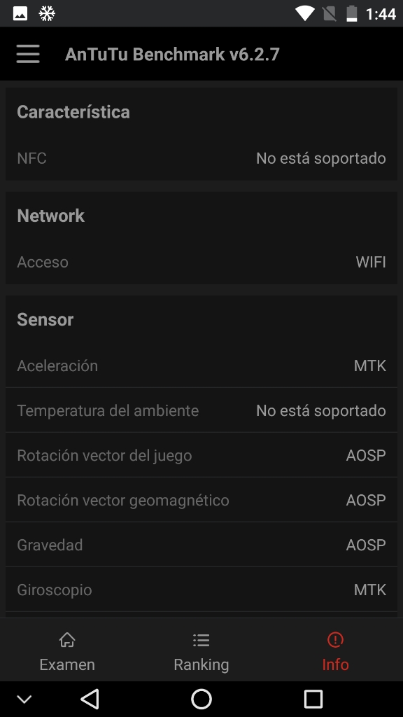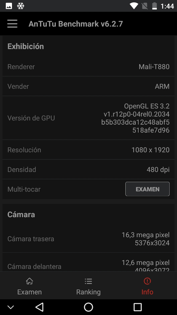 Para la ejecución de estos benchmark, las condiciones del dispositivo son: