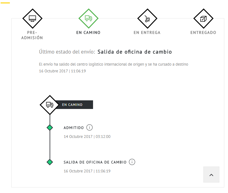 14/10/2017 - Admitido . El envío ha sido depositado en Correos o en el país de origen del envío.