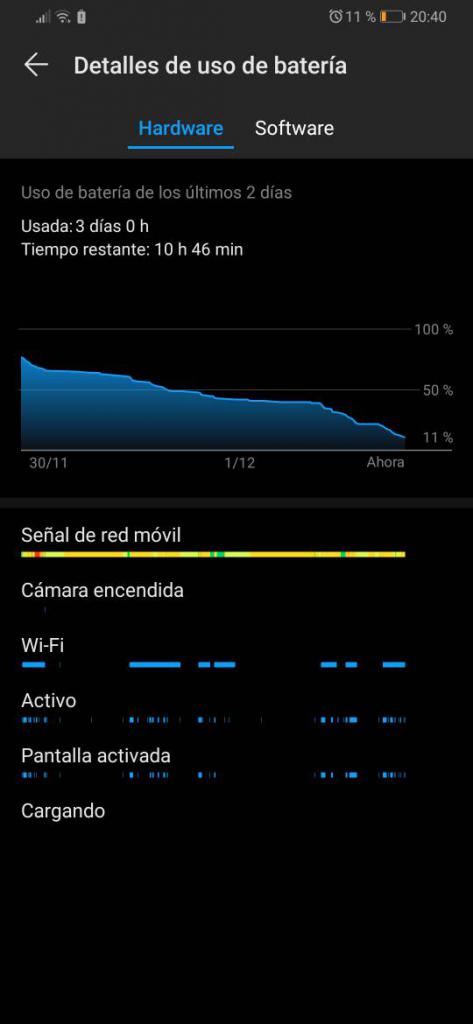 Brillo automático, modo normal, no toco nada y no intento estar sin tocar el móvil ni rollos. Siempre me pasa con mis terminales que hago buenos consumos y encima el P30 Pro destaca en batería, pues ahí están los buenos consumos.