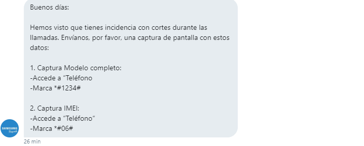 7. Detalla tu incidencia de los cortes de llamada y añade tu usuario de Twitter para tener constancia.