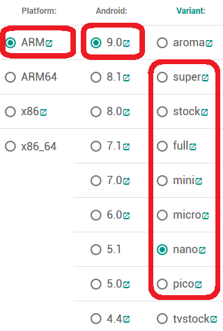 Entiendo que tienes un G900F KLTE y que estás descargando los GAPPS ARM 9.0. Es correcto?: