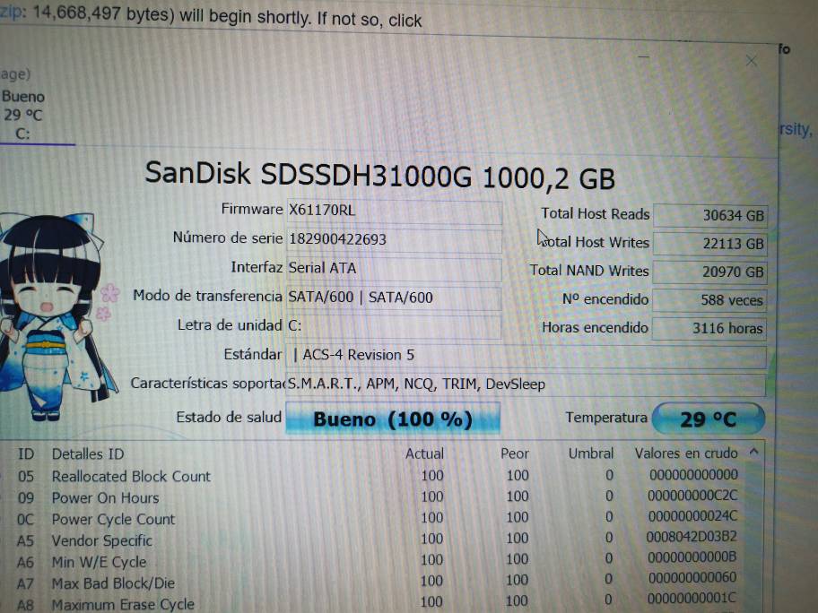 para este tipo de componentes hay que poner una captura del crystaldiskinfo, para saber su estado, gracias.