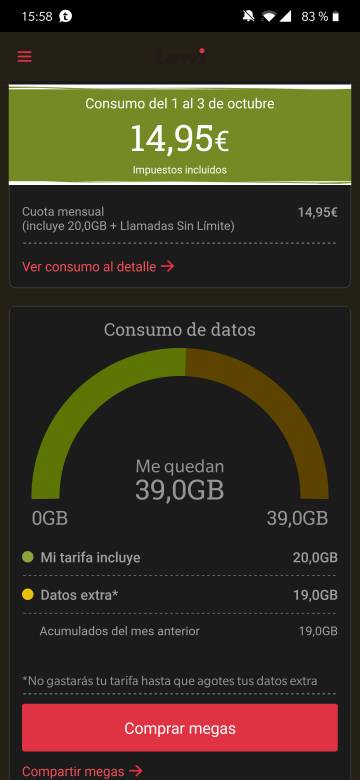 Lo que no me gusta mucho es que no acumule gb pero bueno ..