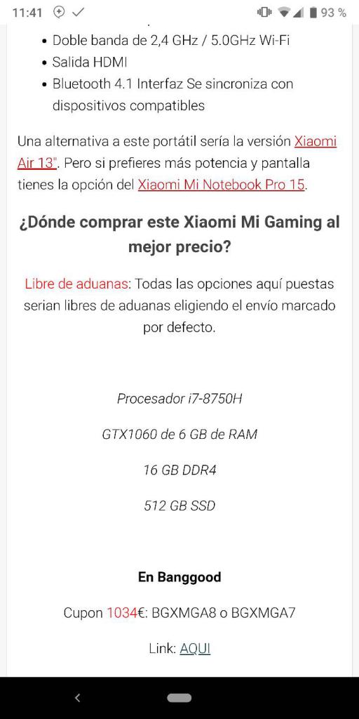 Te aviso más que nada el tema de aduanas. La mayoría de personas que conozco y han comprado este portátil se lo ha parado aduanas. Yo tuve suerte. No te fíes del chollometro, nolodejesescapar y web de ese estilo que aunque te digan libre de aduanas y el vendedor declare 2€.... Se ve a la legua que es un portátil y tienes papeletas para que te lo paren.