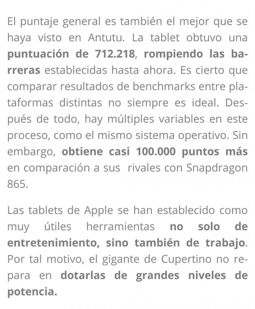 3. Te basas en un test sintético sin verlo en acción aún, aunque no hay duda que ofrecerá más potencia que cualquier chip para smartphone.
