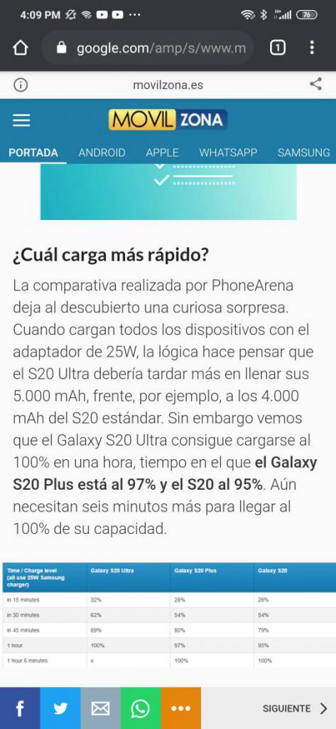 Pero a ver maestro liendre,quien a hablado de su exynos? Creo que he dejado claro que el Mi 10 con su 865 es mejor que el exynos de los S20,quien está ocultando la verdad? Estoy diciendo que teóricamente el Mi 10 si tiene mayor carga rápida que el S20+,pero también he dicho que los 5W que le “faltan” al S20+ es tiempo que recupera luego al tener que cargar casi 300mha más,así que por eso he dicho que no es un factor determinante,ademas si es tan sumamente importante,en el Samsung tienes la opción del cargador de 45W comprándolo aparte,pero al menos tiene la opción,y el xiaomi?