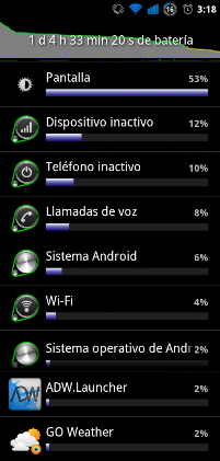 Hola, ya llevo poco más de un día con la nueva versión, y he observado que va más rápida (por lo menos entra más fácil en las apps, aunque también puede ser porque no tengo tantas cosas instaladas como antes). El único incoveniente, creo es, que me consume un poco más que con la 2.0b. Doy datos y adjunto screenshoot.
