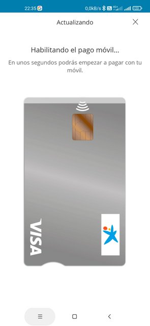 Adjunto un pantallazo cuando se abre la app por primera vez (cuando se acerca a un TPV o un cajero por ejemplo):
