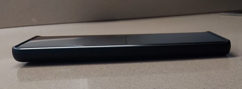 Sobresale también como 1 o 1,5mm arriba y abajo en el frontal para proteger la pantalla para cuando lo pones boca abajo, y lo mismo en la zona trasera para las cámaras.
