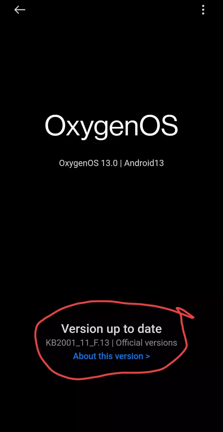 Esta captura no es mia, pero tienes que llegar hasta aqui (Ajustes/informacion del dispositivo/donde sale lo de OxygenOS) y darle a los 3 puntos de la esquina derecha y te saldra la opcion de "Instalación local", ahi vas al final y veras un archivo de 0.90gb
