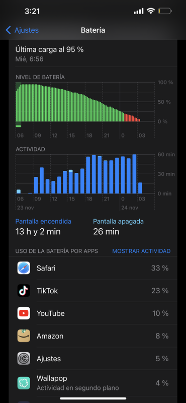 Me sorprende el poco tiempo de "Pantalla apagada" que tienes (y las 13h de pantalla encendida son una bestialidad )