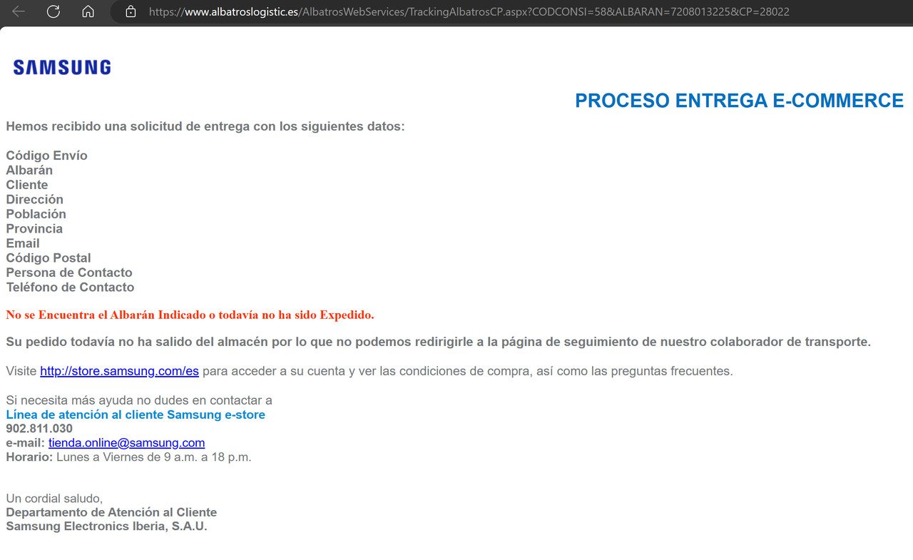 A mi me acaba de cambiar también la página del rastreo de Samsung y me aparecen ya mis datos de envío y el número de albarán
