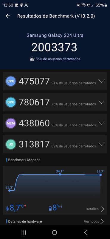 De momento os pongo !! El Potencial de Esta Bestia (S24u) en BenchMark !! lo acabo de hacer.. superando los dos millones de puntuacion