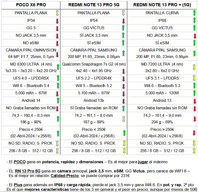 - Pantalla plana - Curva. Es algo mas tirando a personal, de hecho pienso que las curvas son más incómodas en el día a día y es un gusto más que una virtud. De hecho para mi es un punto en contra. Se debería haber valorado al calidad de ellas más que otra cosa. - eSIM. Esto no lo veo un avance, es una característica a valorar por cada uno. - También creo que la valoración del procesador del Pro + 5G debería ser igual al Pro. Ambos son justitos para determinadas tareas. - EL tema del sensor de proximidad creo que es algo muy molesto, y se debería valorar más negativamente en todos. Se han mejorado respecto a lo que había hace 2 o 3 años, pero lo veo un ahorro absurdo. - El tema de las cargas rápidas. Tampoco los valoras por igual. La de 120 W es muy buena, pero 67W para los precios que tienen también es valorable. No les daría votos negativos con esas capacidades que son un estandard hoy día.