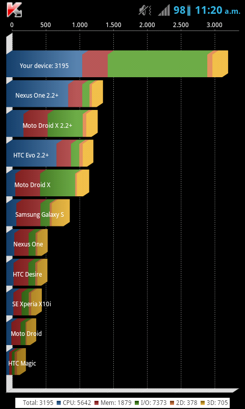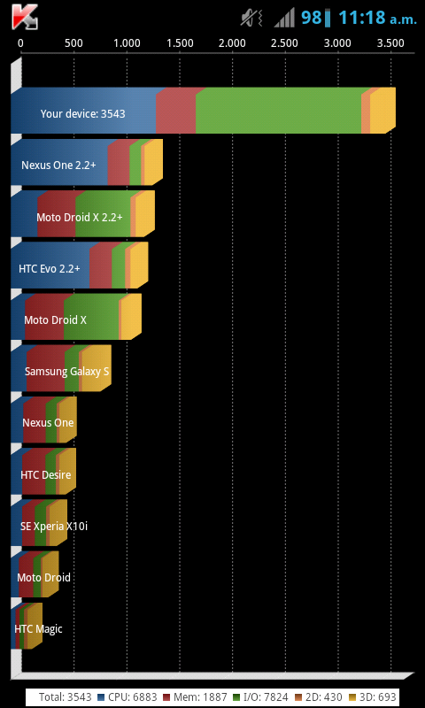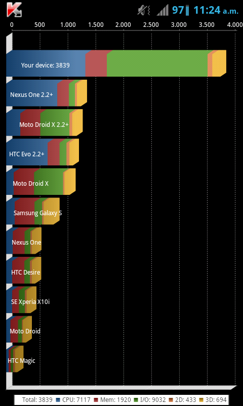 como veis he tratado de coger imagenes mas o menos orientativas, seguro que hay pruebas que den datos mas altos y tb datos mas bajos, cogi de google las que son tradicionales comparandolas con las mias actuales y la verdad que no esta nada mal, situo mi galaxy s a la par que un galaxy s2, y por encima de un nexus. Por lo menos en datos del quadrant, ya sabemos que en la realidad el galaxy s es aplastado por el galaxy nexus o el galaxy s2, pero no deja de ser curioso.