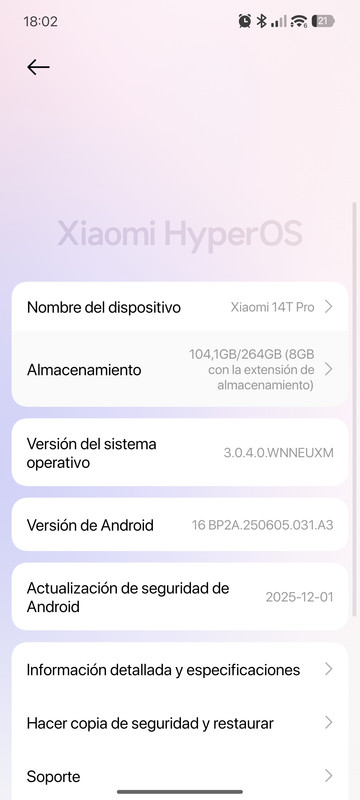 Modelo del dispositivo: Xiaomi 14T Pro (eune) Versión del sistema operativo: 3.0.4.0.WNNEUXM (Android 16) Versión del lanzador del sistema: RELEASE-6.01.05.1908-01061921