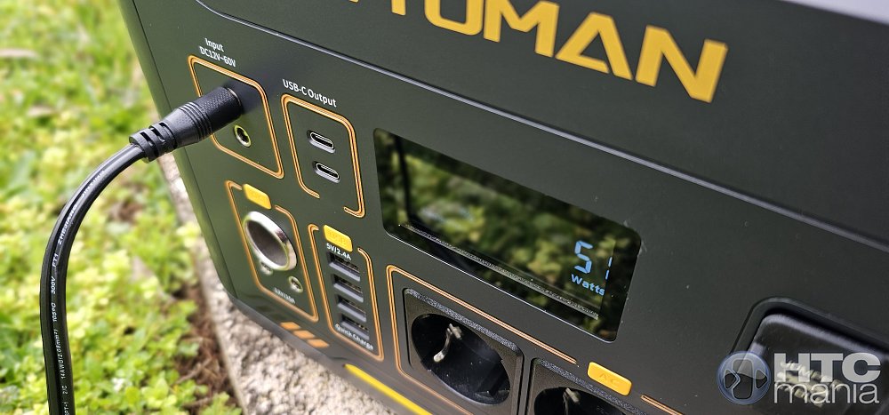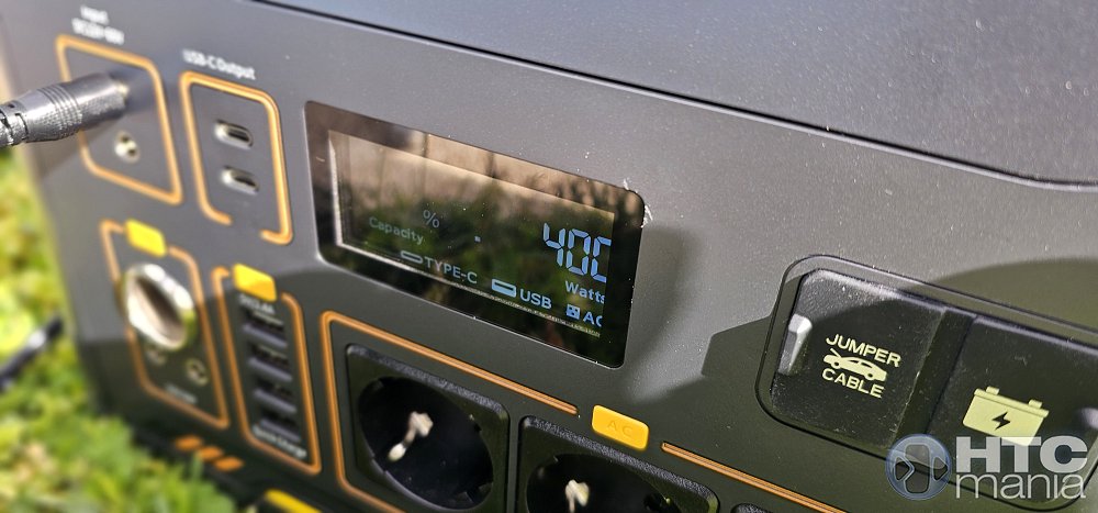 Lo primero que hice tras desempaquetar la unidad fue poner a prueba su sistema de carga para comprobar cómo se comporta con el adaptador de red incluido. Al conectarla a la corriente de casa el sistema detecta automáticamente la entrada de energía y la pantalla frontal se activa para darnos toda la información necesaria. En mis pruebas he podido ver cómo la estación alcanza una potencia de entrada de 315W de forma muy estable. Esta cifra es bastante buena para una batería de este tamaño y permite que no tengamos que esperar una eternidad para tenerla lista.